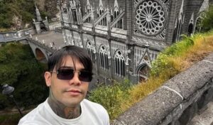 Influencer Jeferson Cossio visita el Santuario de Las Lajas durante su paso por Nariño
