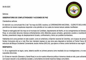 Grupo armado responde a señalamientos del Observatorio de Conflictividades y reafirma su compromiso con la paz