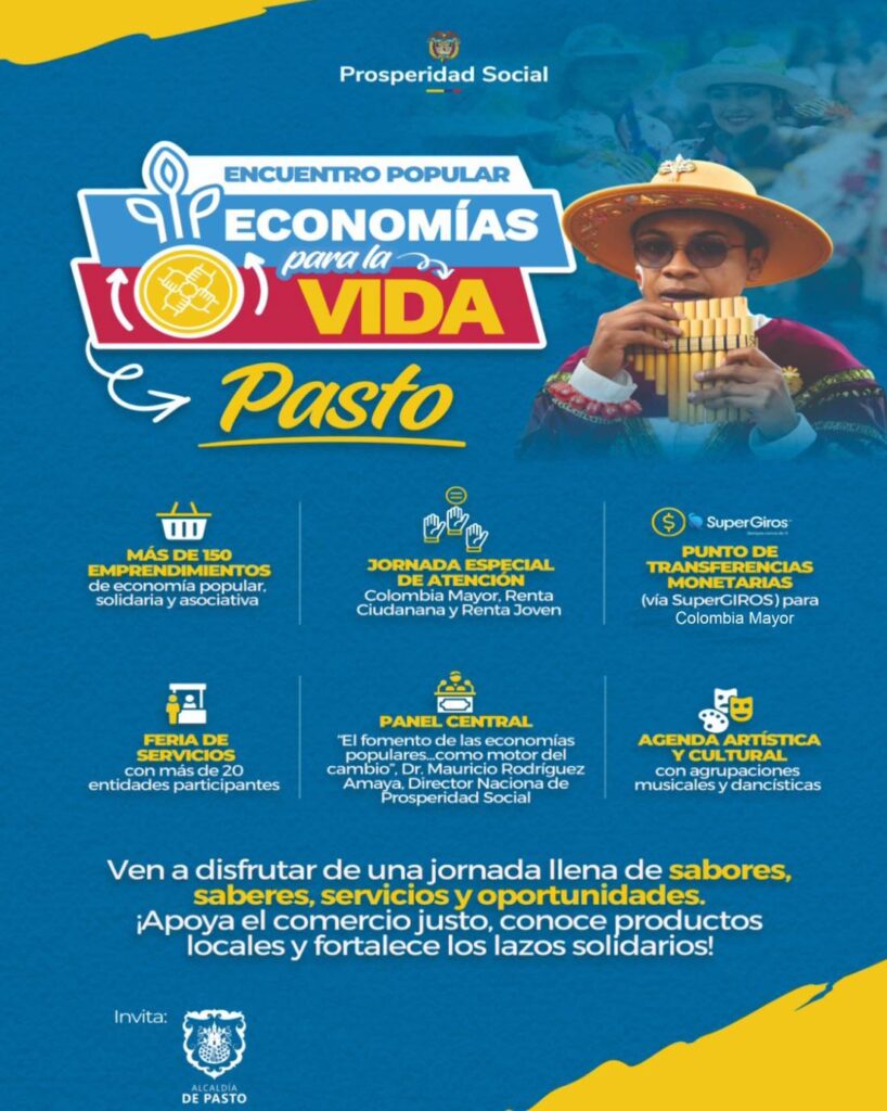 El Departamento para la Prosperidad Social invita a emprendedores, asociaciones productivas, organizaciones comunitarias y ciudadanía en general a participar en los Encuentros Populares de Economías para la Vida, espacios creados para fortalecer la economía popular y promover oportunidades productivas en los territorios.