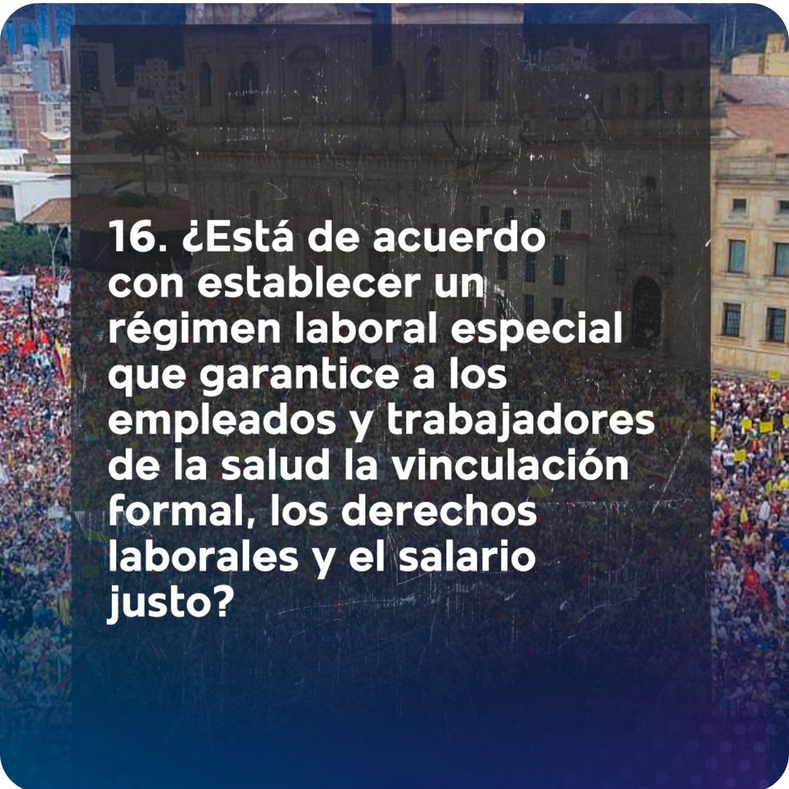 ¿Está de acuerdo con establecer un régimen laboral especial que garantice a los trabajadores de la salud vinculación formal, derechos laborales y salarios justos?