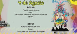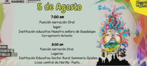 Galeras, Nariño – El municipio de Galeras abre nuevamente sus puertas al arte de la narración oral con la programación oficial del Décimo Séptimo Festival Nacional de Oralidad “Galeras Cuenta”, que se celebrará del 4 al 9 de agosto , consolidándose como un espacio emblemático para preservar y compartir la tradición oral del suroccidente colombiano.