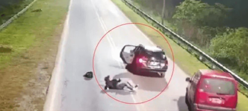 En el video se observa cómo la mujer abre la puerta trasera del Chevrolet Corsa y se lanza al pavimento. El conductor, al notar el hecho, detiene el vehículo y desciende, mientras la joven recoge sus pertenencias caídas. Posteriormente, una camioneta se detuvo para auxiliarla y esperar a la policía.