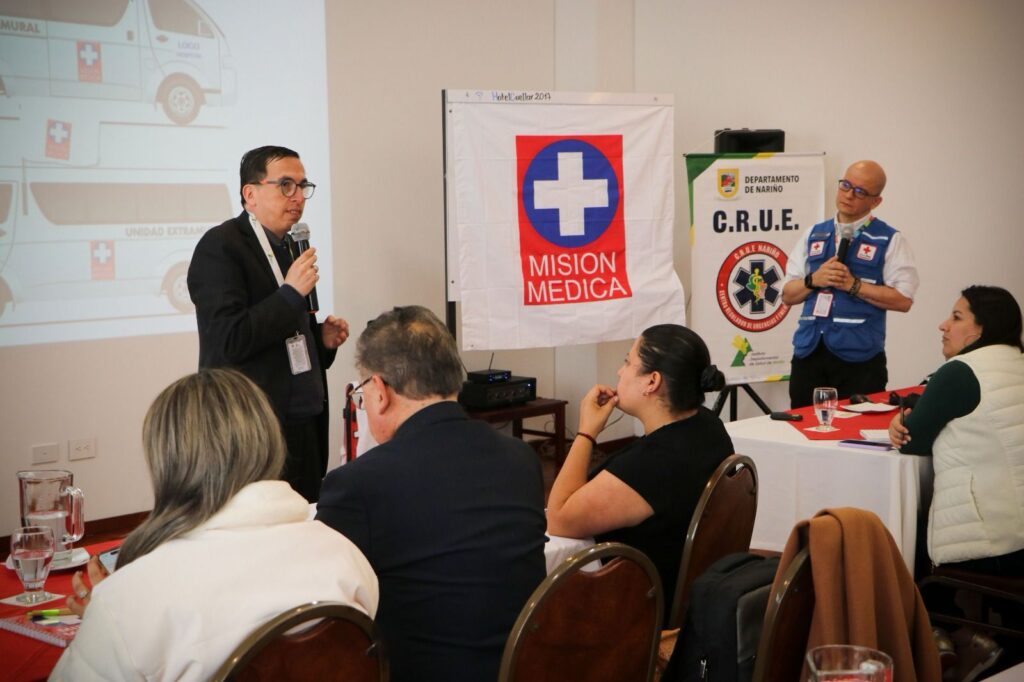 El segundo espacio fue la Mesa Departamental de Misión Médica, organizada en articulación con la Organización Panamericana de la Salud, la Cruz Roja Colombiana y el Comité Internacional de la Cruz Roja (CICR). Este encuentro reunió a representantes de la Gobernación de Nariño, la Fuerza Pública, Defensoría del Pueblo, Fiscalía, Procuraduría, IPS, EPS y demás actores institucionales, públicos y privados, en un ejercicio de articulación para promover la protección y el respeto de los equipos sanitarios.