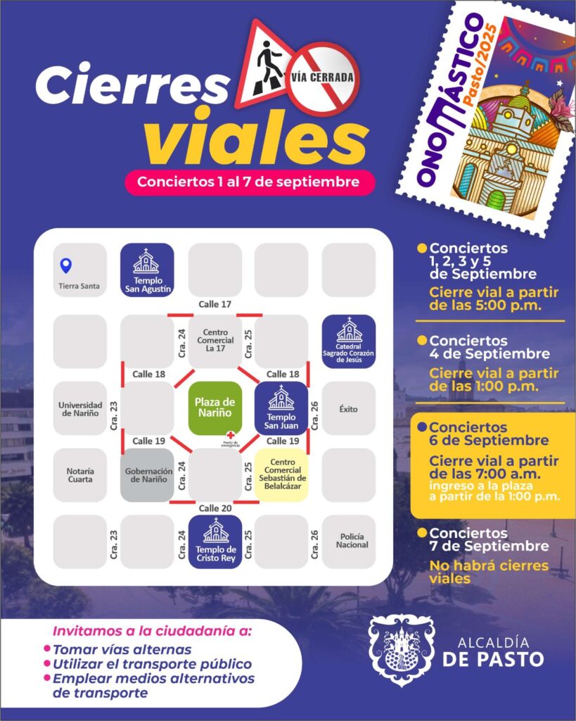 - Domingo 7 de septiembre: no habrá cierres por la jornada de Pasto en Salsa.